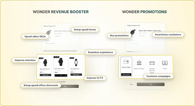 With upsells, store credits, and exchanges make returns a growth channel for your Shopify store.