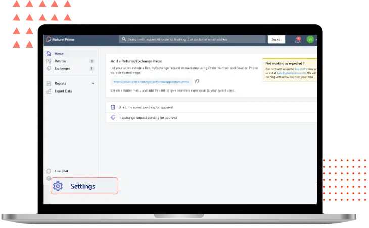 2. You’ll now be directed to Return Prime’s admin dashboard. Navigate to the left side menu and click on Settings.
