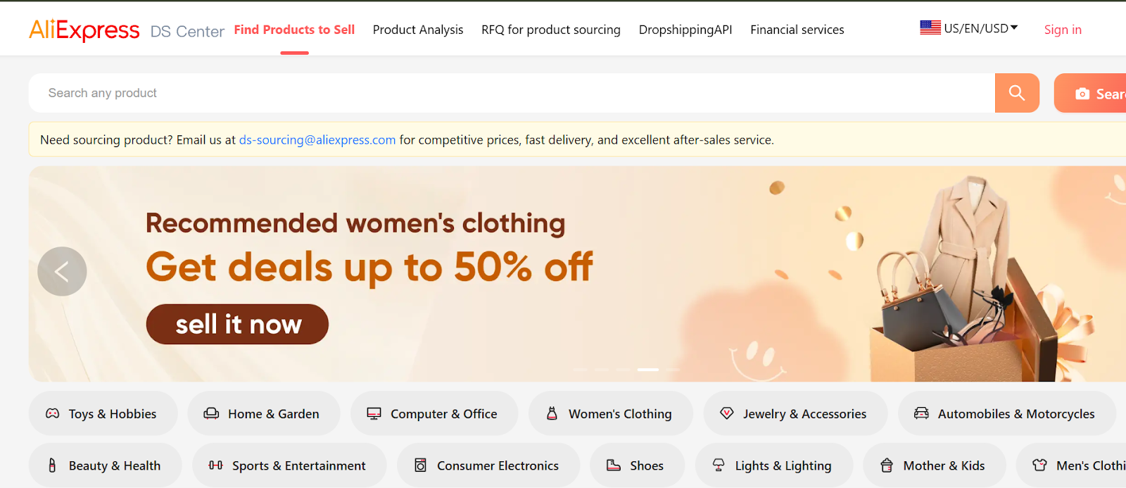 AliExpress ist eine der weltweit größten und beliebtesten Dropshipping-Lieferantenplattformen, die Sie mit Tausenden von Lieferanten verbindet. Obwohl die meisten Lieferanten in China ansässig sind, bietet das Unternehmen eine vielfältige Produktpalette an, von Mode bis Elektronik. AliExpress ist ideal, um Beziehungen zu Lieferanten aufzubauen und gleichzeitig Marktforschung zu betreiben.