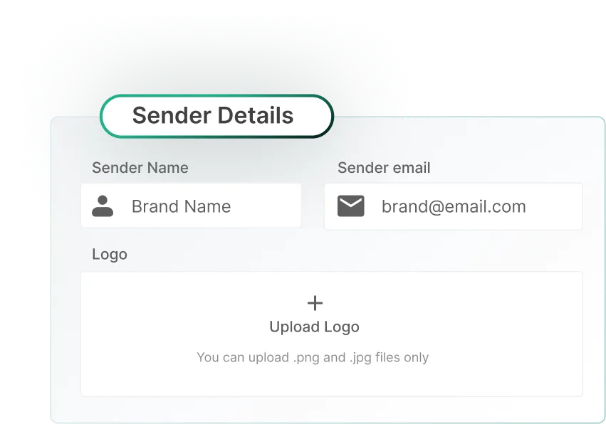 Set sender name, email, and brand logo, or upload your custom HTML template for email notifications. Keep branding consistent and build customer trust with professional messages.