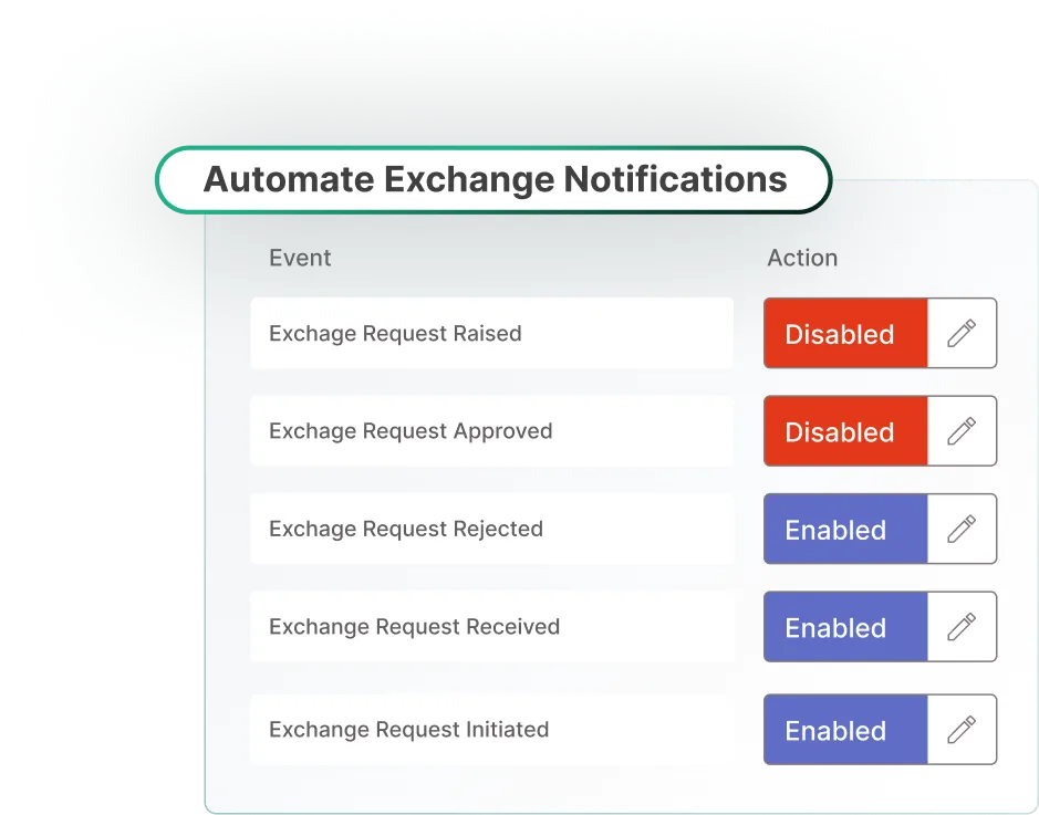 Notify customers when exchange requests are raised, approved, or received. Enable them to keep track of dispatch and delivery of the new item.
