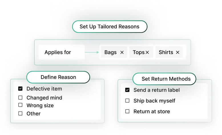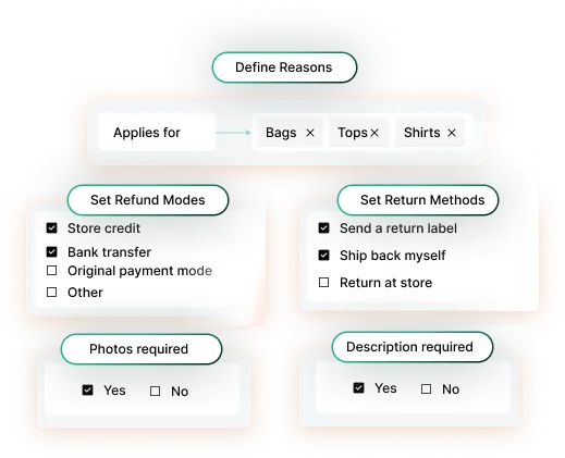 Easily configure specific reasons for returns and exchanges. Guide customers through personalized return and exchange experiences based on those reasons.