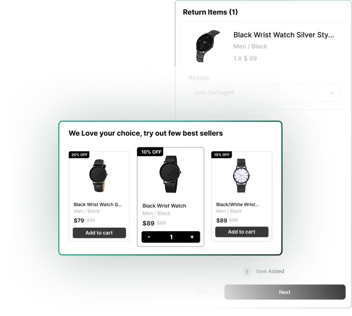 Turn returns and exchanges into new revenue opportunities by upselling relevant products during your customer's return journey.